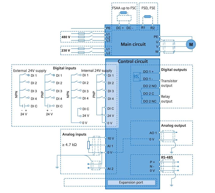 Hướng dẫn đấu dây biến tần Siemens Sinamics V20